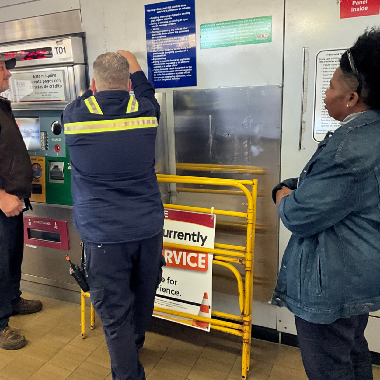 Sean Craig (CPRS), Installing ONEbox at Upton Subway Station.